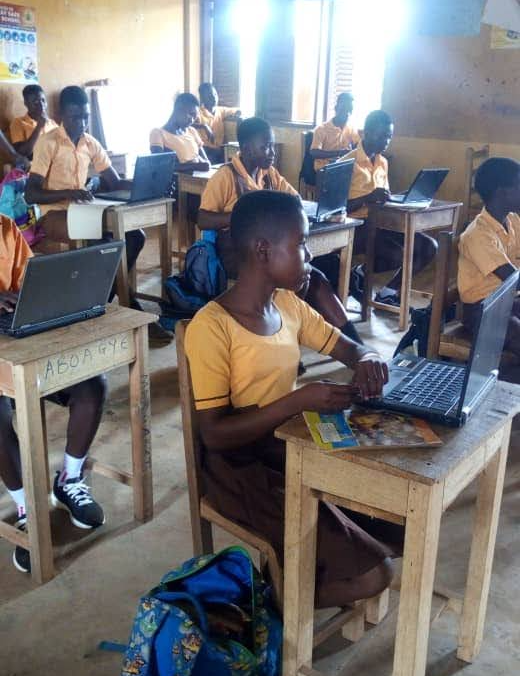 Our second pilot project occurred before Kente Connect was an established organization and was carried out during the Covid-19 pandemic. In some sense, it was an extension of the Bobiam Junior High School initiative and constituted a second set of laptops donated laptops from Chazy Central Rural School. The donation included five laptops and peripheral devices as well as additional school supplies. It was delivered to the Junior High School in Adanwomasi by John Arthur, a friend of the board from Ghana, and Philipp is working in the school to ensure equipment has the greatest effect in their curriculum.